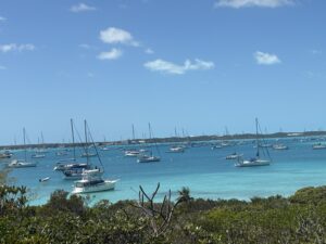 Three weeks in George Town felt like moving in for the season — morning Cruiser’s Net, lazy swings by the water, a splash of art on the island trail, and plenty of good food, cold drinks, and laughs. It was less about the miles we sailed and more about the moments we stayed.