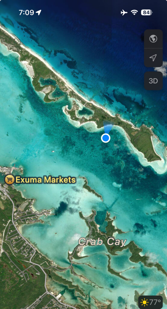 We left Black Point Settlement stocked with fresh groceries, full water tanks, and a shaky start to the week behind us. The plan was simple: make a short hop south before the final push to Georgetown. But nothing in the Exumas is ever as straightforward as it looks on the chart, especially when you’re cruising with a five-foot draft and a strong will.