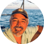 Rodney is the steady hand at the helm, calm, capable, and always up for an adventure. With over 12 years of sailing experience, he brings a deep respect for the sea and a natural talent for fixing just about anything. He holds a 50-ton Master Captain’s license and has a background in construction management, specializing in electrical work. Those skills come in handy more often than you’d think when your home floats. Whether he’s navigating rough weather, rebuilding a diesel engine, or savoring a perfect anchorage, he does it all with patience, precision, and a dash of humor.